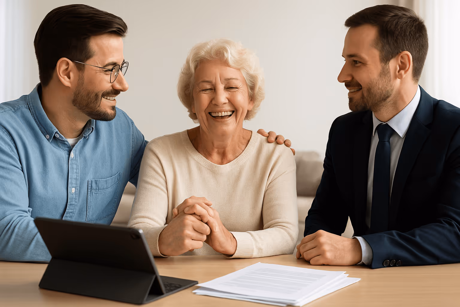 <img src="https://primest-make.s3.eu-north-1.amazonaws.com/08c1674f-910a-485d-b7d6-59646e590fa4.png" loading="lazy" alt="Grafik 2: Symbolische Illustration eines älteren Ehepaares mit Enkel, expertengeführte Online-Beratung am Laptop, Dschungel aus Papieren im Hintergrund wird 'weggewischt'" class="advertorial-content-image">
