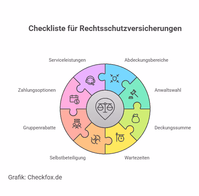 - Selbstbeteiligung und Ausschlüsse prüfen: Achten Sie bei Vertragsabschluss auf die Wartezeiten, Selbstbehalte und auf ausgeschlossene Rechtsgebiete.
