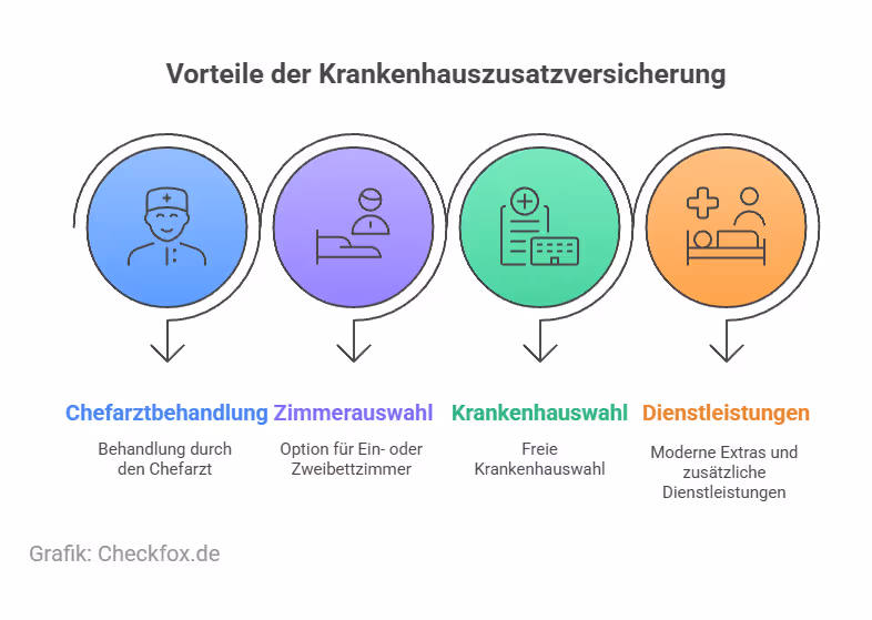 - Zusatzversicherte: eine Krankenhauszusatzversicherung übernimmt je nach Vertrag z. B. Zimmerzuschläge oder Honorare für Wahlärzte