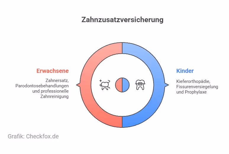 Das hängt stark vom Tarif und Alter ab. Ein realistischer Einstieg liegt bei etwa 44 € monatlich für zwei Erwachsene und zwei Kinder – bei solider Absicherung. Mehr dazu im Checkfox-Ratgeber: Was kostet eine Zahnzusatzversicherung?